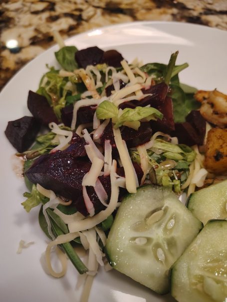 Mix all veggies then add mayo, yogurt, and mayo. Let it set for a couple of hours. It’s better when it sits.