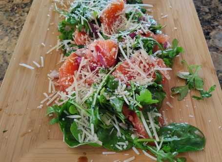 Place arugula in a large salad bowl; top with grapefruit and onion.