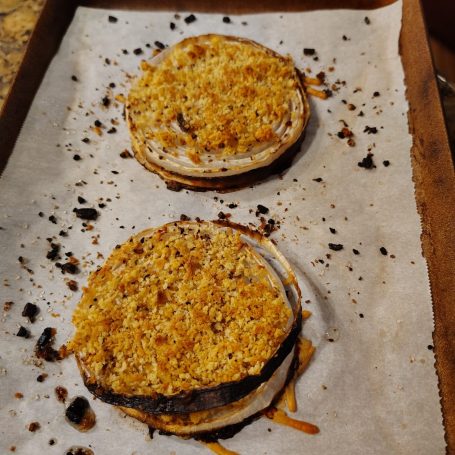 Remove apples from oven and top with tuna mixture, Cut cheese slices in half. Place each half on tuna. Return to oven and bake until cheese is melted. Aprox 5 minutes. Toaster oven works great for this.