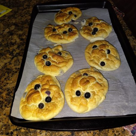Preheat oven 300. Line baking sheet with parchment paper. In glass bowl whip egg whites and cream of tartar until forms stiff peaks. Put cottage cheese, syrup, egg yolks, and vanilla. Use emersion blender to remove lumps in cottage cheese. Place blueberries into a small bowl and coat with cornstarch. Gently fold cottage cheese mixture into egg whites, now fold in blueberries, careful to not overmix. Spoon onto parchment paper sprinkle with a little cardamon and bake for 25-23 minutes. Until golden brown.